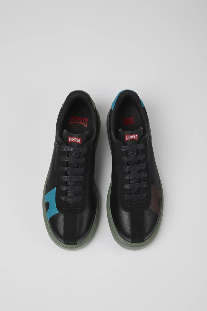 Black leather and nubuck men’s sneakers with OrthoLite® Recycled™ removable footbeds, and XL EXTRALIGHT® Organix™ 3.0 outsoles (30% bio-circular compounds).