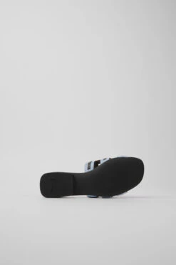 Brown, blue, and black leather women’s sandals with 100% TPU outsoles (20% recycled).