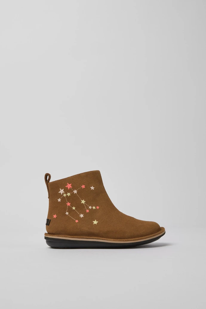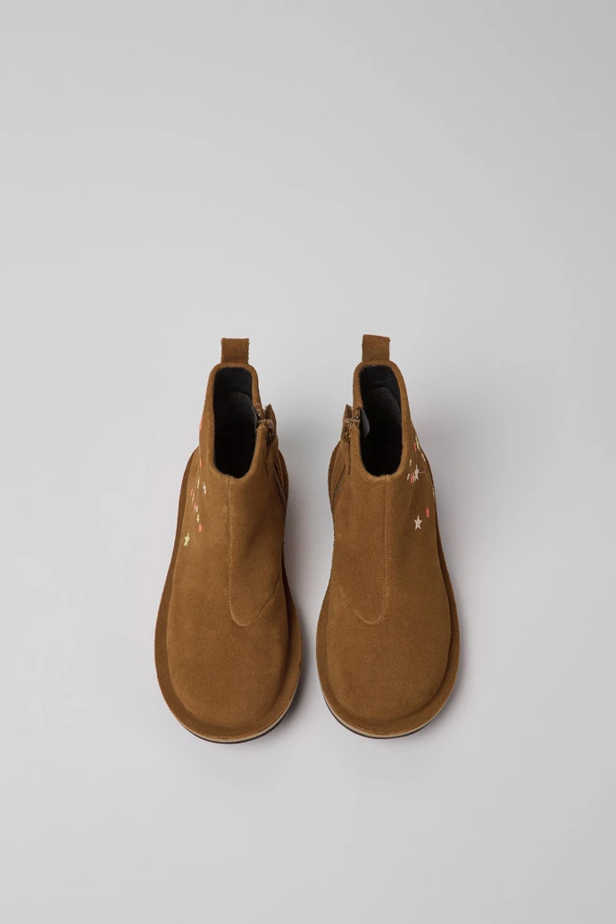 Brown nubuck boots for kids with zip closing system and EVA outsole.