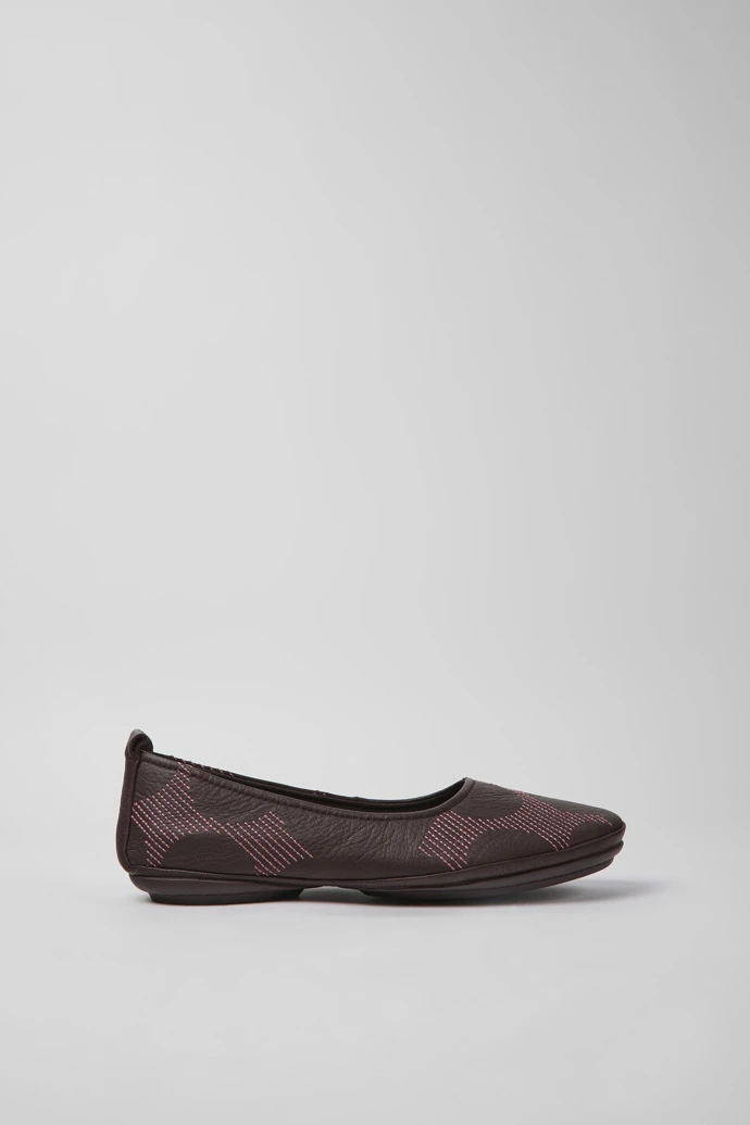 Multicolored leather women’s ballerina flats with graphic circular motif, removable EVA footbeds, and rubber outsoles (20% recycled).