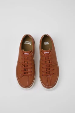 Red multicolored recycled leather women’s sneakers with OrthoLite® Recycled™ removable footbeds and XL EXTRALIGHT® Sustainable + outsoles (51% recycled).