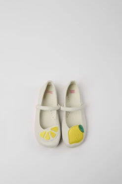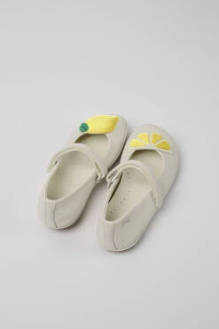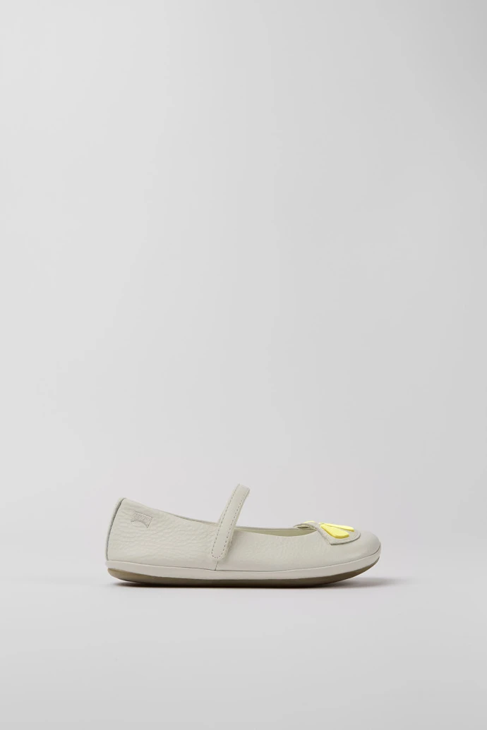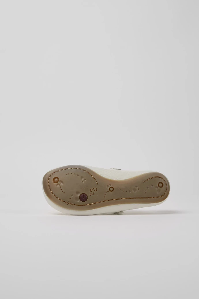 White leather girls’ ballerinas with hook-and-loop closing system and 100% rubber outsoles.