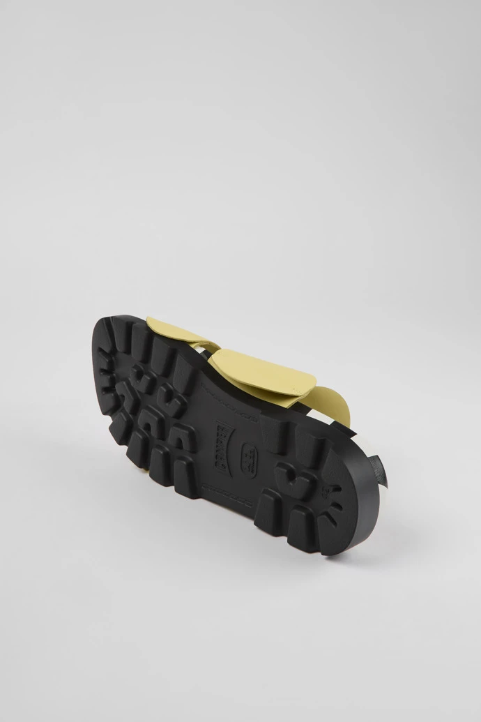 Yellow leather men’s sandals with oversized flower cut-out, striped footbeds, and XL EXTRALIGHT® outsoles.