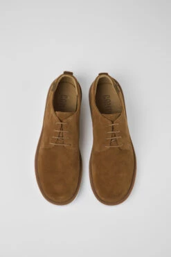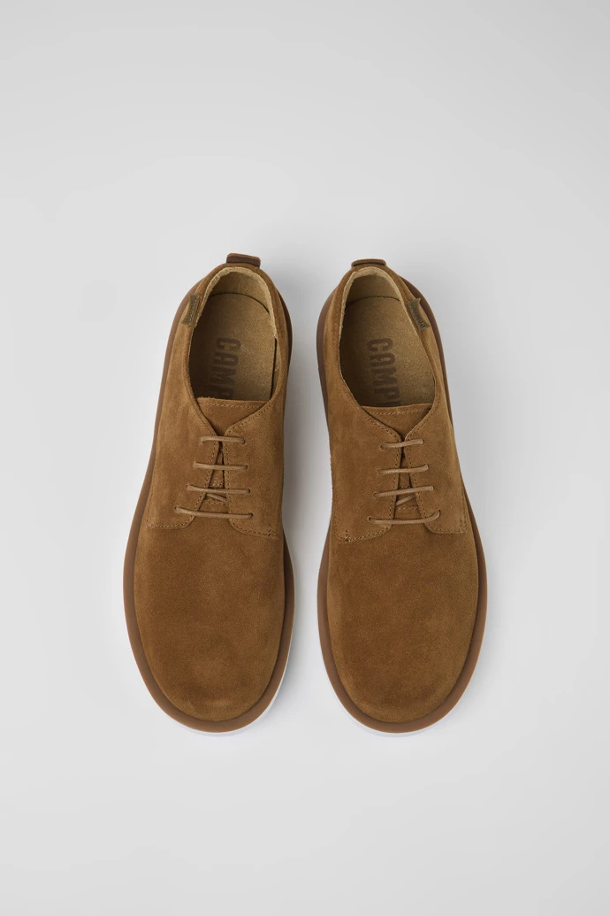 Brown nubuck men’s shoes with OrthoLite® Recycled™ non-removable footbeds and XL EXTRALIGHT® Organix™ 3.0 outsoles (30% bio-circular compounds).